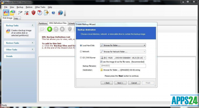 Macrium Reflect Free Edition est un programme conçu pour créer des sauvegardes de données et travailler avec des images de disques durs.
